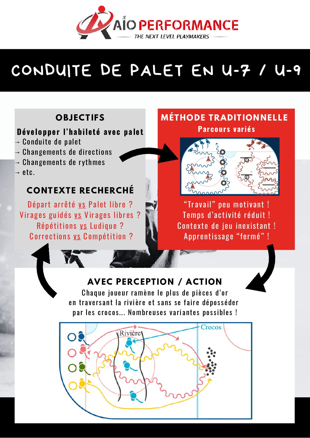 Sur une glace ou sur un terrain de façon générale, le jeu se déroule à une vitesse vertigineuse. Les espaces se ferment, les lignes se déplacent, les opportunités apparaissent et disparaissent en une fraction de seconde. Dans cet environnement mouvant,